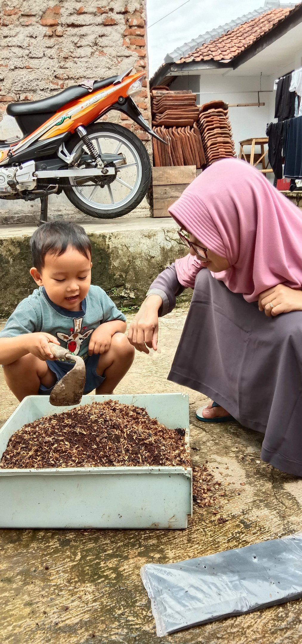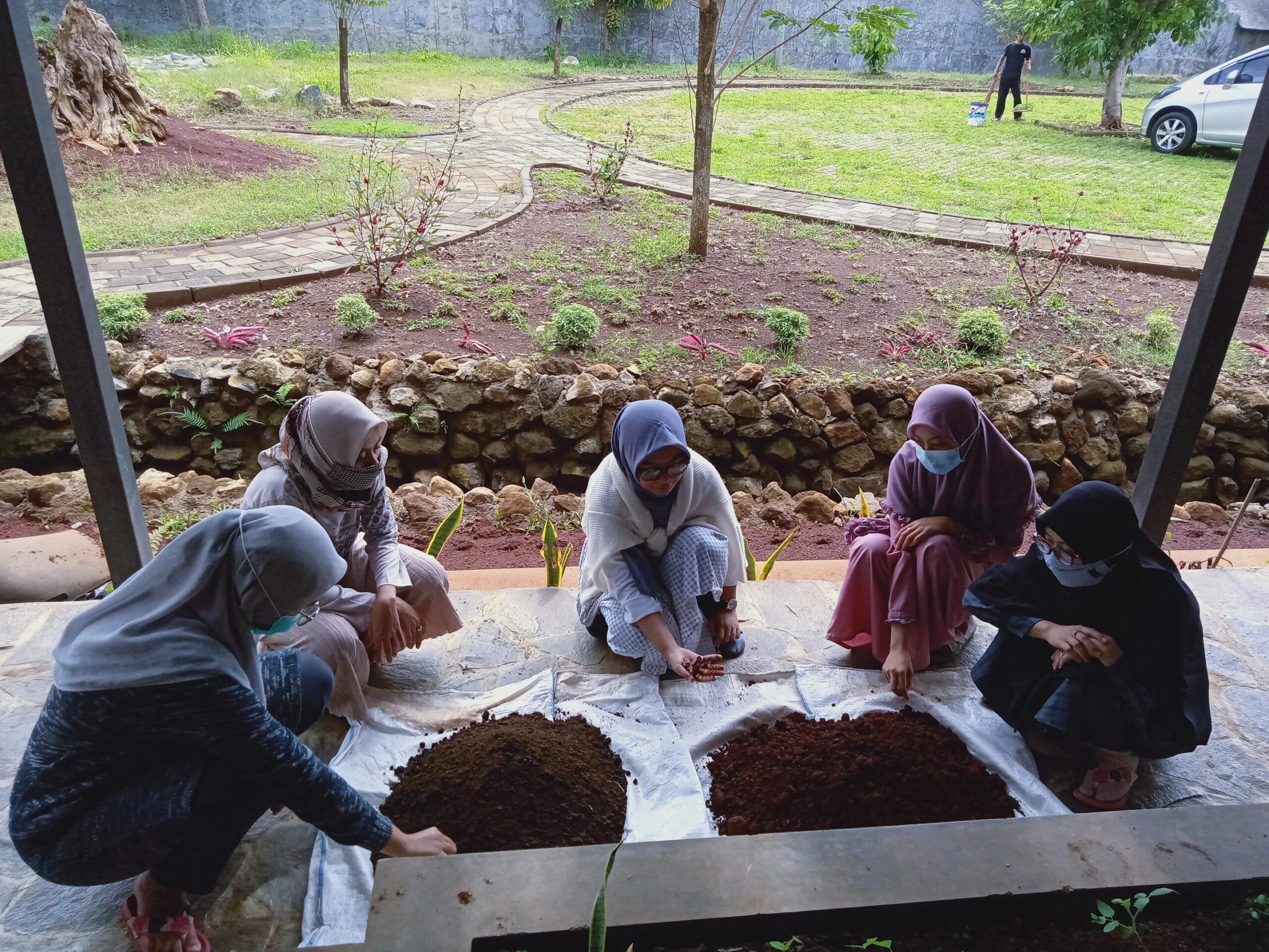 (Kegiatan kelas berkebun bersama guru dan staf Sekolah Linimasa. Kelas berkebun diawali dengan pemaparan materi, kemudian praktik langsung, dan praktik langsung di rumah bersama keluarga)