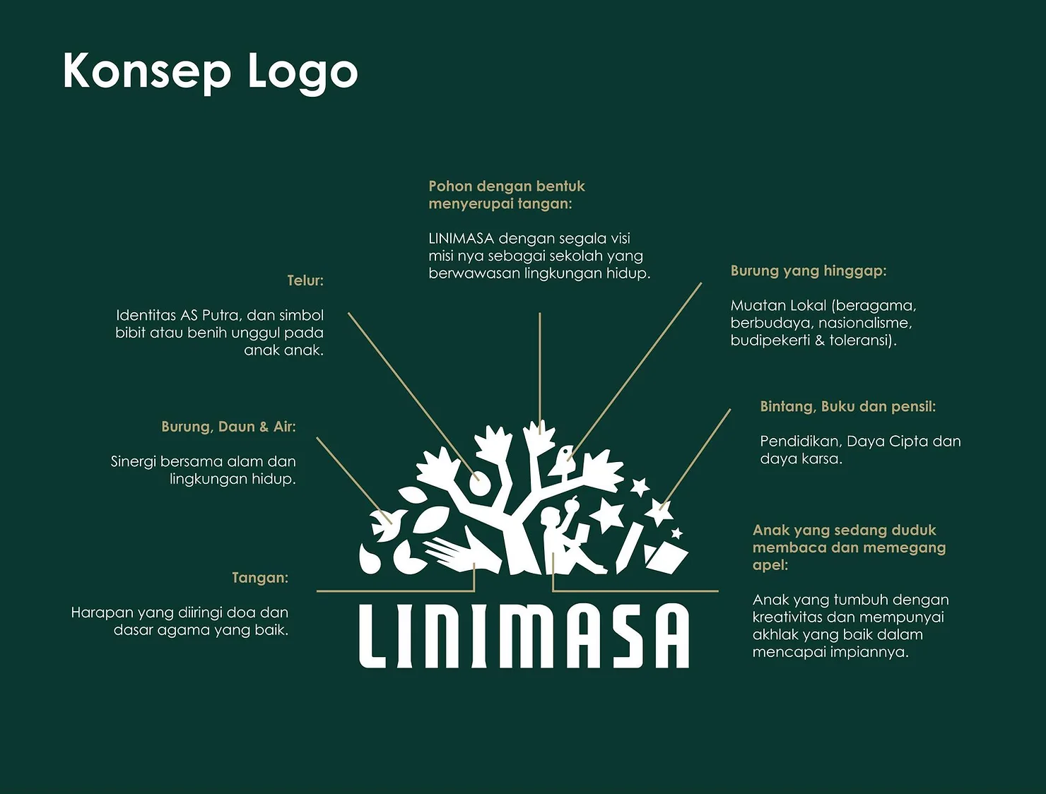 Logo dari Sekolah Linimasa ini menggambarkan latar belakang, karakteristik dan cita-cita besar yang ingin kami capai.